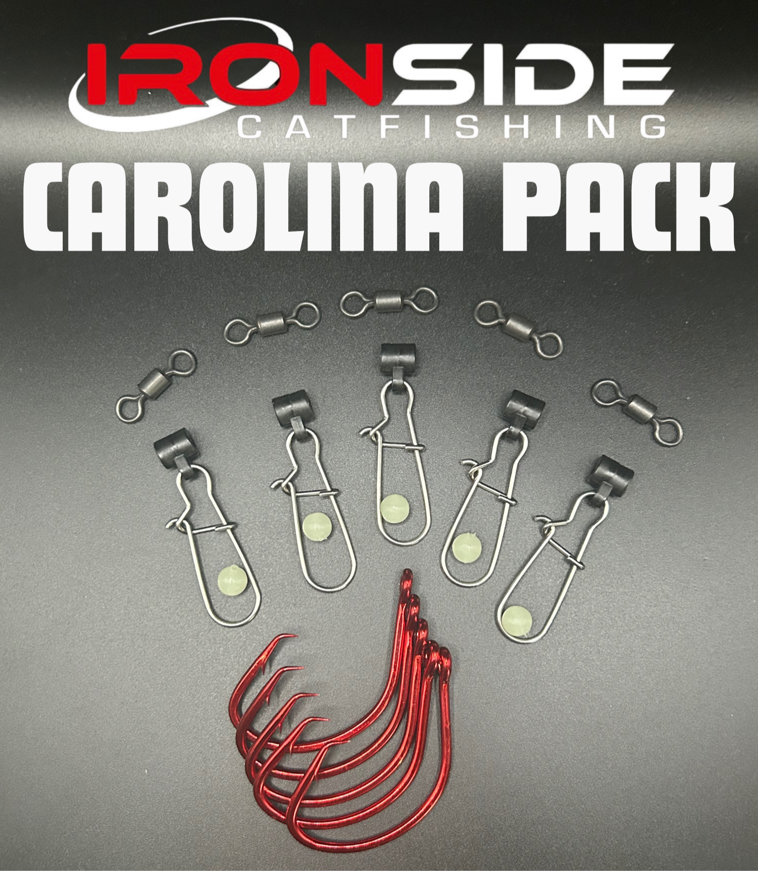 Everything needed for your Trophy Carolina Rig. 5 Pack of 10/0 Trophy Hooks, 5 Pack of 220lb Rolling Barrel Swivels, 5 Pack of HD Sinker Sliders, and 5 8mm Soft Knot Protector Beads.